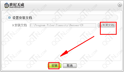选择正确的洛奇英雄ol游戏安装目录,如:C:\Program Files\Tiancity\Heroes-CN