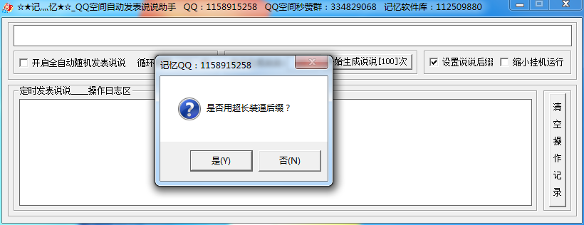 2、弹出提示框,提示是否使用超长装逼说说,点击是为默认,点击否可以自行设定