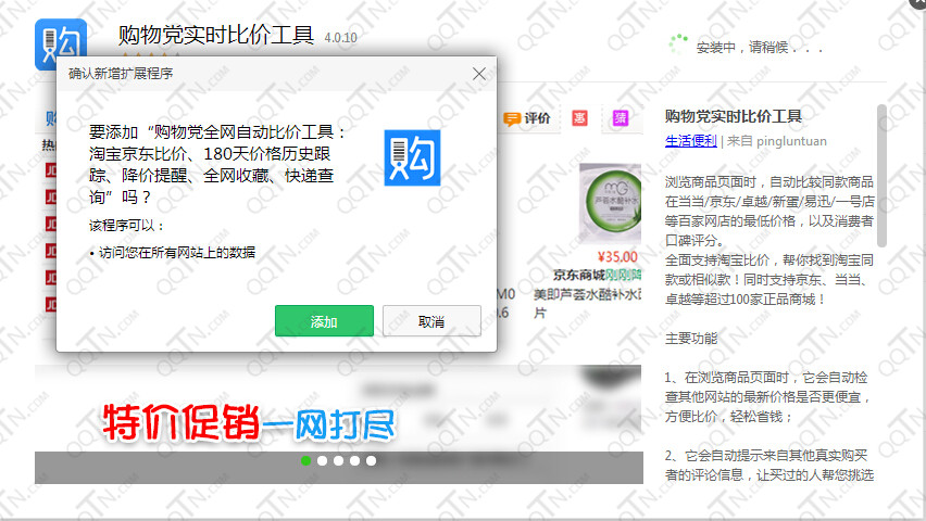 浏览商品页面时,自动比较同款商品在当当/京东/卓越/新蛋/易迅/一号店等百家网店的最低价格,以及消费者口碑评分。