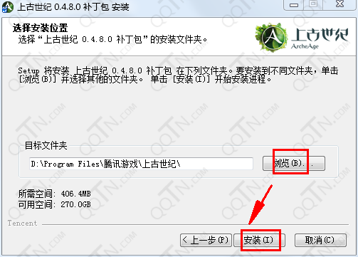 安装时选择正确的游戏安装目录,否则安装无效,如“D:\Program Files\腾讯游戏\上古世纪\”