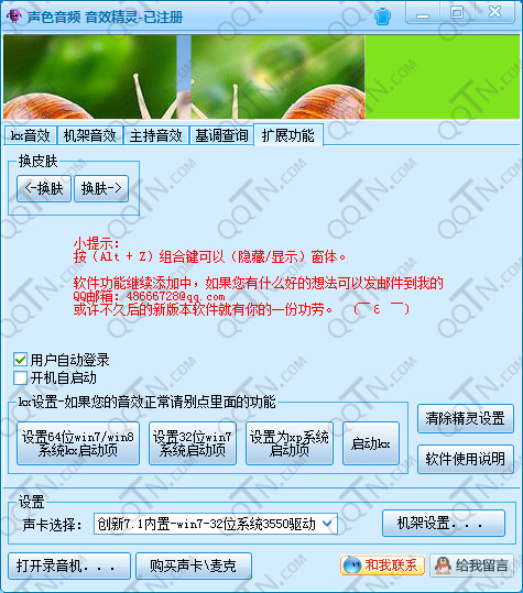 变声:利用调节kX的变声插件,使您的声音产生一定的变化,达到变声的目的,独特的变声效果,让您网络娱乐更加幽默风趣;