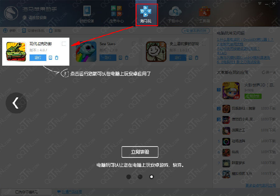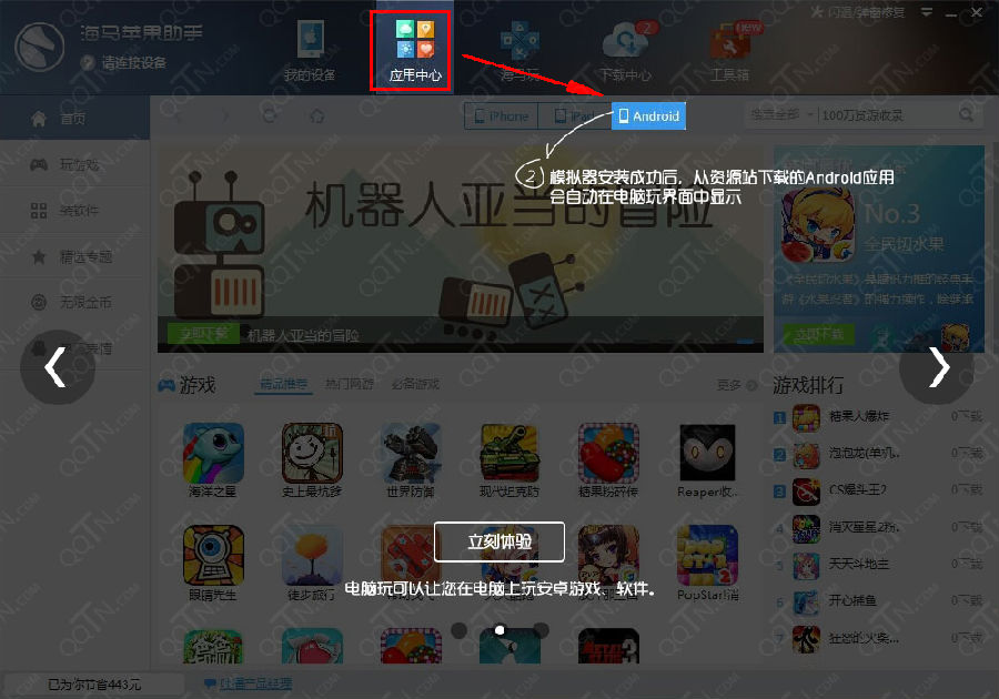 海马玩4.0版是海马苹果助手和Droid4X(安卓模拟器)的结合体,本版本不仅支持iPhone、iPad设备的管理、下载,还增加的安卓设备的管理、下载,另外还能在电脑上玩安卓软件、游戏,并保留了强大的工具箱功能!