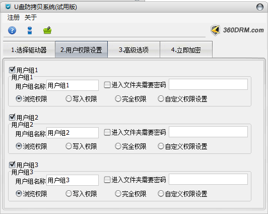 管理员拥有所有权限,可以复制文件,删除文件等,并且能 解密U盘 及 重新修改用户权限.