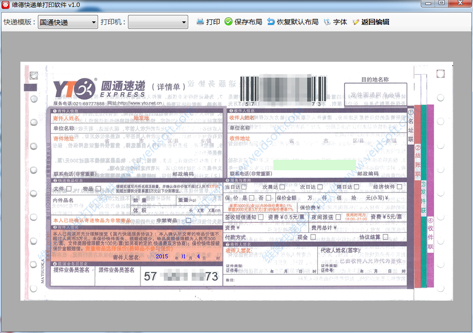 维德快递单打印软件是一款完全免费的快递单打印软件支持国内主流的快递单打印,如中通、圆通、韵达、顺丰等。软件无需安装,绿色直接运行,无需手动填写发货单,提高工作效率!