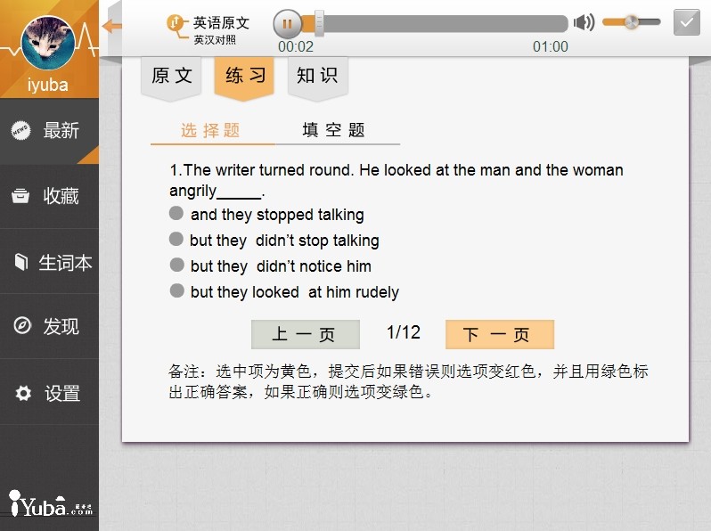 二、内容科学严谨、呈现方式多样。提供声音、原文、知识、练习四位一体的画面,给用户全新的体验。对每篇课文进行了详细的语法词汇解析,关键句型展示,难点说明、练习反馈等。
