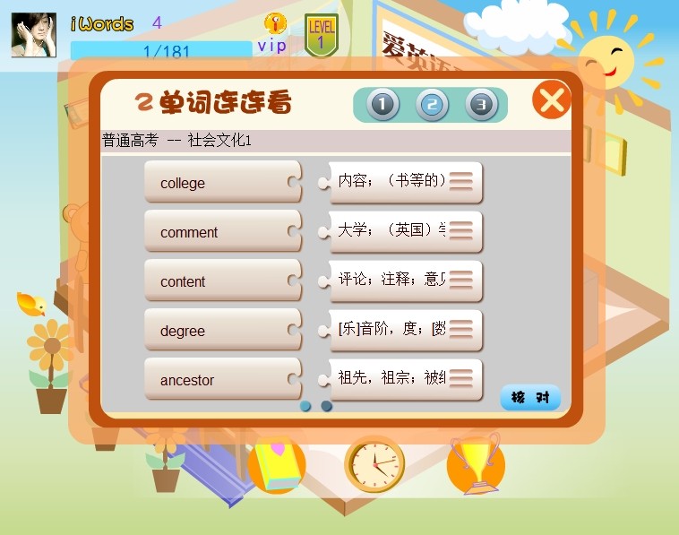 二、多样的练习方式,包括单词拼写、读音测试、连连看,趣味选择等,让您在一个轻松、愉快的氛围下学习单词。从不同方面进行巩固。