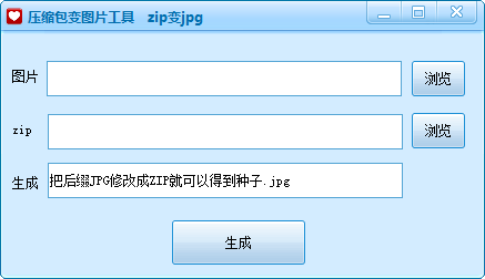 2、点击浏览导入图片和要隐藏转换的zip压缩包文件