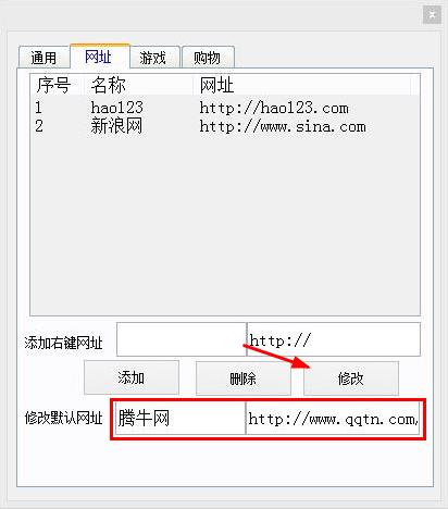 2、点击设置按钮,可修改网址导航