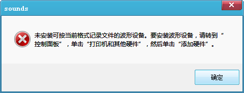 如果你的电脑中未安装记录波形设备,当你点击开始录音的时候,工具会提示未安装可按当前格式记录文件的波形设备。