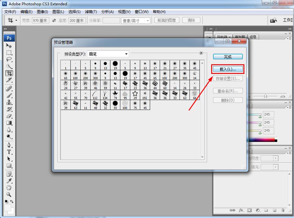 3、选择电脑中存在的笔刷文件,并确定,如图所示: