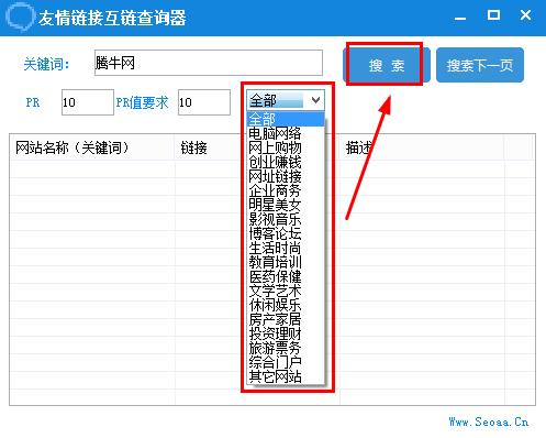 2、选择网站分类,然后点击搜索就能够进行快速查询了。