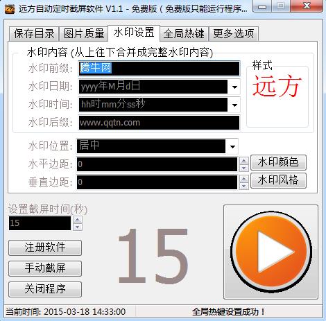 远方自动定时截屏软件是一款由远方软件推出的电脑定时截图软件,这款软件拥有非常全面的功能,你可以自定义图片保存目录、自定义图片格式和质量、自定义截图热键,当然它最强大的是支持自定义截图水印,不管是定时自动截屏还是手动截屏它都能做到,欢迎下载使用!