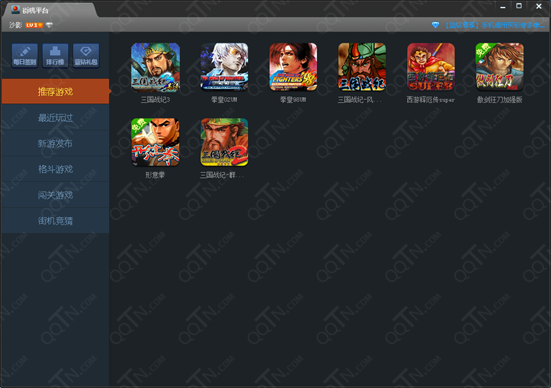 腾讯QQ游戏再现儿时经典街机游戏,如拳皇、三国战纪、西游释厄传、合金弹头等超经典街游,其中每款街游都经过官方授权,玩家可放心大胆玩耍,并会不定期举办街游竞技比赛,一展雄姿,打遍天下无敌手的时候到啦!