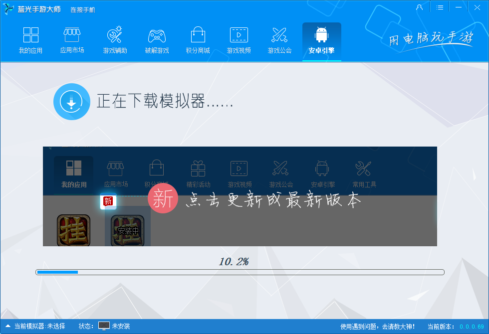 4、软件会打开蓝光手游大师,并且自动下载全民漂移电脑版游戏。