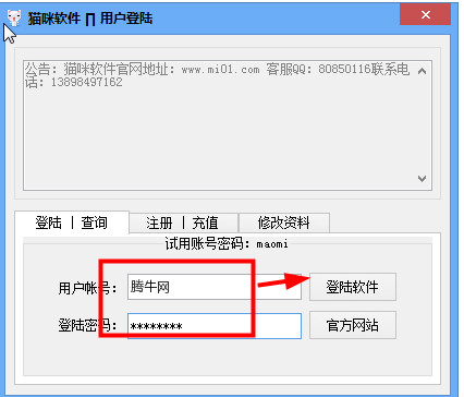3、这时就会看到已经破解的字样(如果你破解之后还不能进行登陆,可以用maomi这个试用账号)