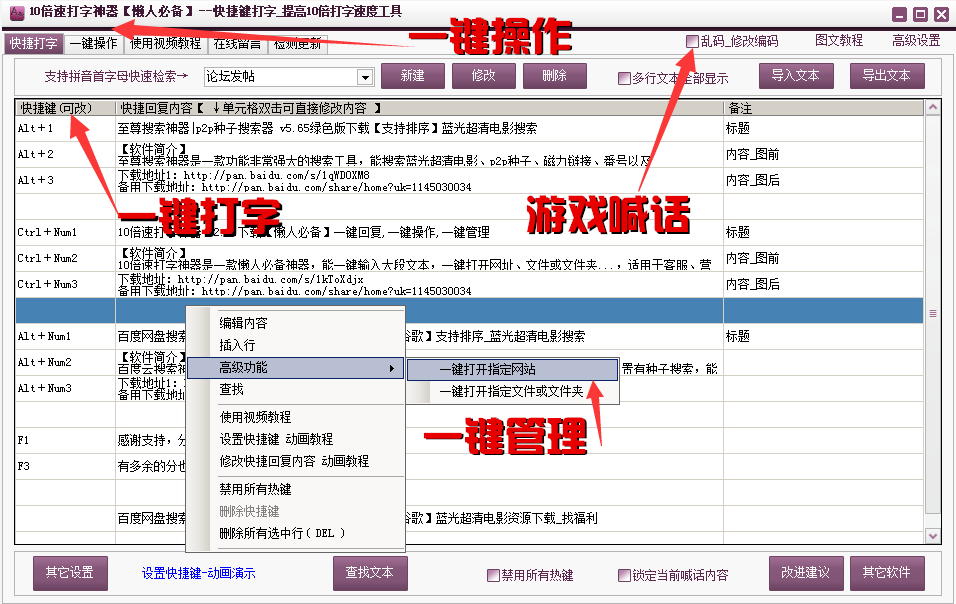 相比其它客服工具,10倍速打字神器的最大优点是:在线39款杀毒软件检测安全,支持多行文本,文本可归类,一键打字,自定义文本及快捷键,10倍速打字神器注定让您相见恨晚。