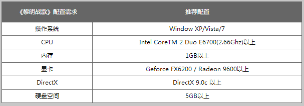 黎明战歌配置要求