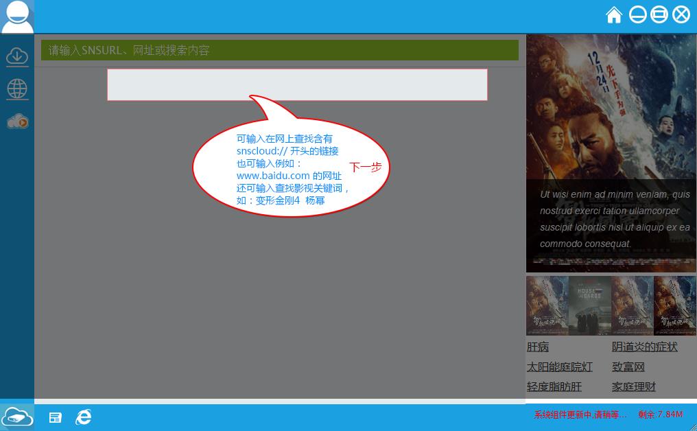 即时云是一款免费云点播软件,这款多媒体即时云点播软件拥有美观的用户界面,它不仅能够为你提供网页浏览功能,还支持播放高清视频并提供下载,即时云内置浏览器可直接搜索软件、视频、游戏等资源,垂直直达内容页面,过滤了繁杂的点击搜索过程,找资源更快捷方便。可广泛应用于视频分享网站、电影网站、软件网站、教育网站等有资源分享需求的网站,也适用于资源发布团队发布资源等,有需要的朋友欢迎下载使用。