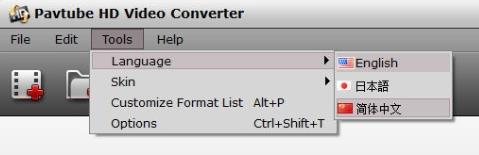 Pavtube HD Video Converter是一款国外著名的HD高清视频编码转码工具,这款软件支持中文语言界面,你可以通过下方图示进行中文语言设置。它可以用多样的高清晰度视频格式转换您的影片。可在PSP、IPhone上播放的格式,转换画质很高,操作及其简便。 支持多种视频格式,内置多种转换预案!支持显卡GPU硬件加速,非常方便易用!Pavtube HD Video Converter转换器是专为转换来自高清相机及DV的高清/非高清视频而设计的。支持包括JVC, 松下,索尼,佳能等品牌相机视频。还支持转换未受保护的高清视频、电影、DVR文件(*.tivo)到其他视频文件格式,以便在热门媒体设备上播放,如Apple TV, PS3, Xobx, Xobx360, WD TV HD Player, PSP, iPod, iPad, iPhone,黑莓,安卓智能手机等。也支持在iMovie, Final Cut Express, Final Cut Pro, Avid, Adobe Premiere等苹果电脑编辑软件里编辑。