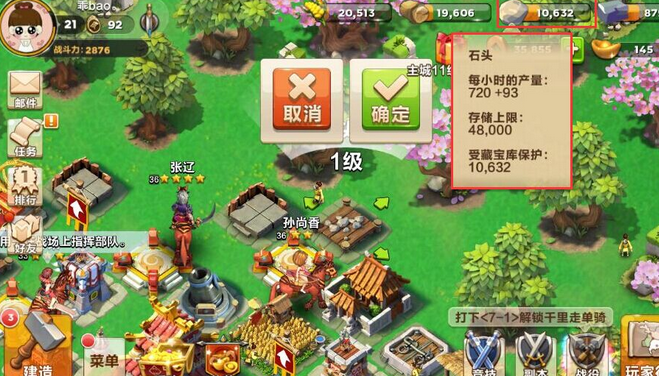 4、建造石头库:从所有途径获得后的石头都需要储存,所以建造石头库和升级也是很有必要的,储存到更多的石头可以升级主城的任何建筑。