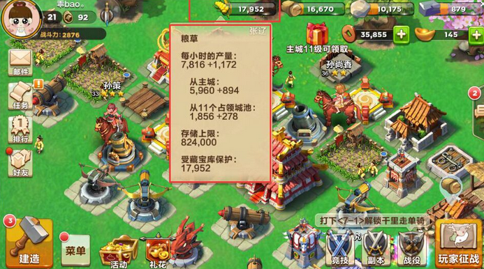 2、可以通过玩家征战去抢夺其他玩家的粮草资源。