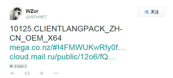 Windows10最新预览版10125镜像泄露,但是只有英文版本,不久之后,俄罗斯爆料大神WZor在Twitter上放出了64位系统简体中文语言包,不习惯英文的朋友,现在可以下载安装Windows10简体中文语言包,一大波更新等你来体验。