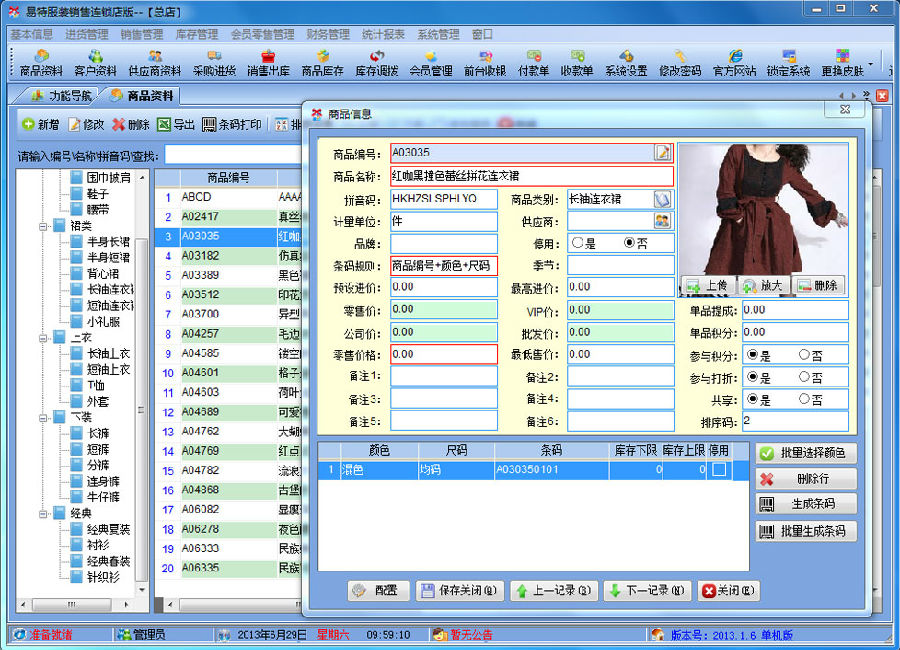 易特服装销售软件连锁店版单机版是专门针对服装店、内衣、鞋帽店而设计的销售管理软件,这款软件非常具有市场潜力,软件结构明晰、操作简单,对店铺商品的进销存能很好地管理,让你的经营帐目清清楚楚,独创的颜色尺码处理技术可以轻松应对各种颜色尺码。