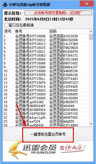 迅雷会员账号分享器可以免费提供大量真实的迅雷会员账号,有些迅雷会员账号发布后后在一定的时间失效,我们也不必担心,因为VIP迅雷账号资源广,一般那些迅雷会员账号分享器会每隔一段时间更新一批,所以尽可放心无忧