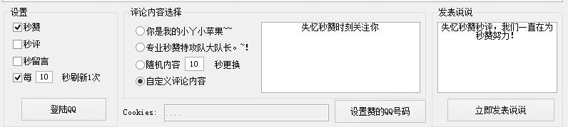 失忆QQ空间秒赞秒评软件是一款由失忆软件工作室推出的QQ空间自动点赞、自动发评论的软件,可以用于网络推广、简单易懂、非常实用,欢迎广大QQ空间用户免费下载使用。
