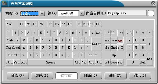 <新增>:您可以通过点击此按钮新建一个声音方案,输入声音方案名称,为各种按键设置您喜欢的声音文件(目前支持扩展名是wav和mid的声音文件),设置完成后按<保存>按钮即可完成;