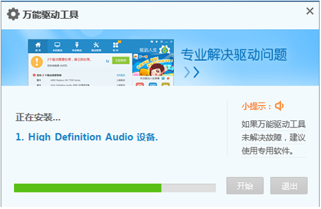2.将下载到的"zip"压缩包解压出来,双击运行里面的"驱动安装器.exe"文件,将出现下面的操作界面 ,点击“开始”后,程序将自动检测您当前电脑的声卡设备驱动状态,点击“开始“即可自动开始安装驱动