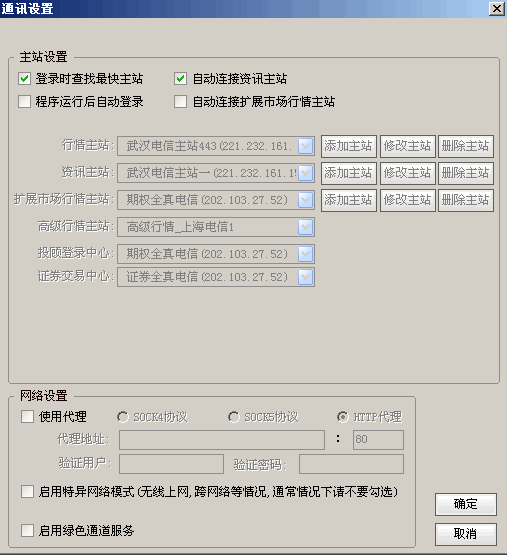 点击“系统检测”,可以查看行情主站和交易主站的连接速度情况