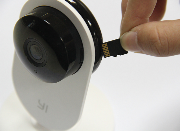 2.从电脑上安全移除读卡器之后将 TF 卡插入小蚁智能摄像机,然后给机器上电