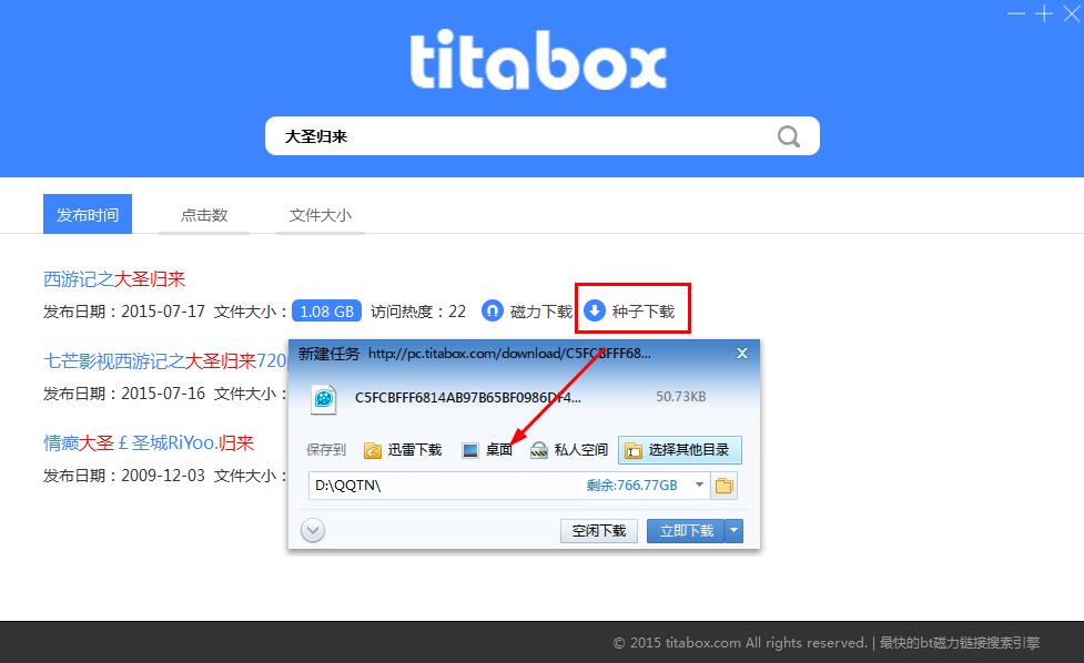 2、点击【种子下载】,配合迅雷等下载工具使用。