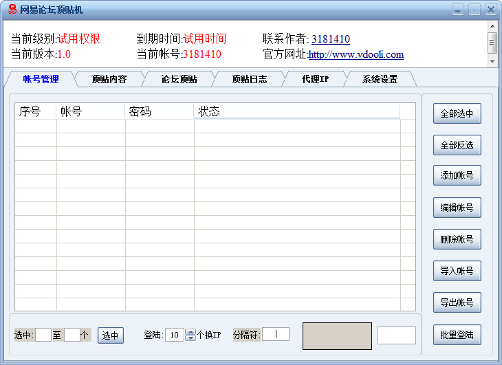1、可批量登陆163论坛帐号,无效号自动清除!