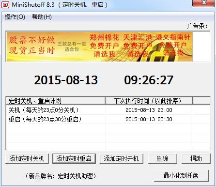 MiniShutoff又名定时关机助理,它是一款最好用的电脑定时关机、定时重启软件,它支持多种电脑定时关机、重启方式,包括一次性定时关机、重启,每天、每周、每月定时关机、重启,支持在系统锁定状态下定时关机、重启,支持开机自动运行,并且可最小化到系统托盘,非常便捷好用。