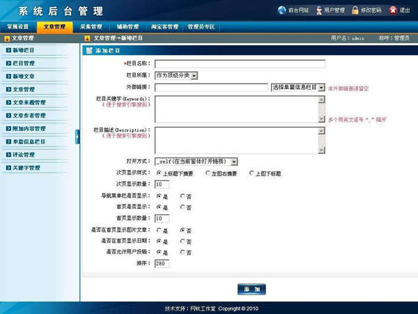 网钛CMS是一款文章管理系统,能通用、操作简单让不懂代码但又想建立自己网站的朋友,更专注为个人网站或中小型门户所构建。