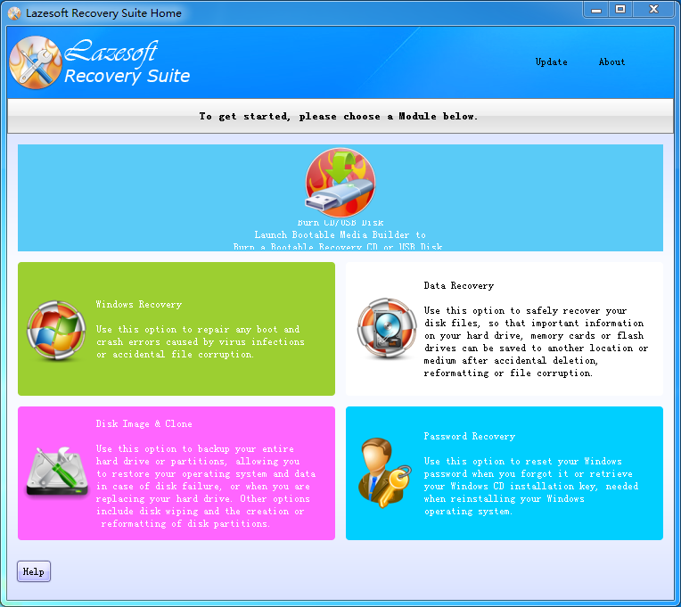 Lazesoft Recovery Suite Home 懒人数据恢复套装 是拥有千万用户的专业数据恢复产品。支持通过 CD 和 USB创建恢复介质,支持恢复数据和密码。