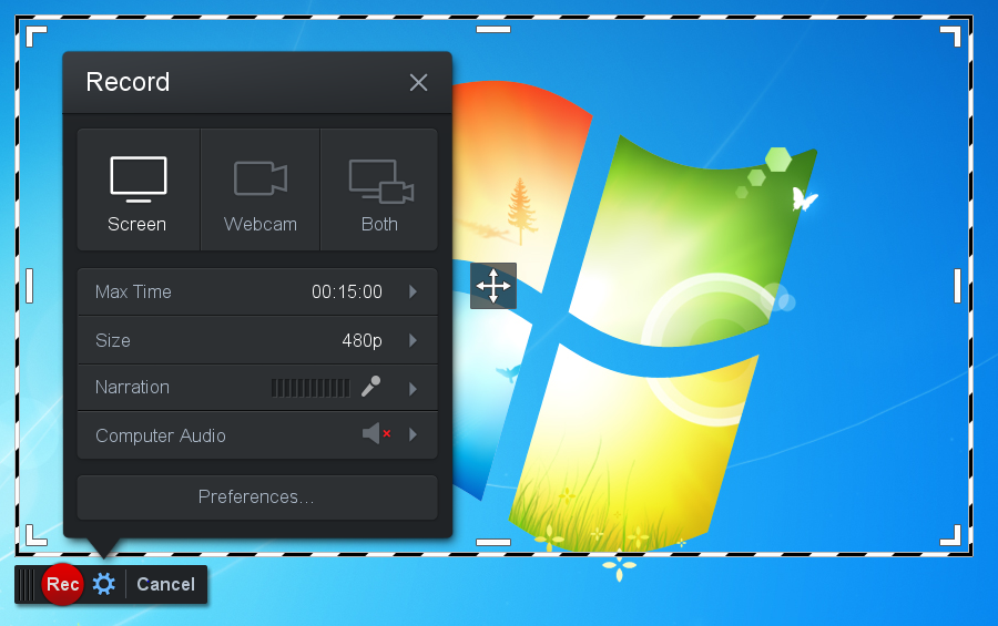 Screencast-O-Matic录屏工具是一款优秀的屏幕录像软件。支持录制屏幕,录制摄像头,以及同时录制。免费版支持最长15分钟的录制。同时可以获取电脑扬声器和麦克风的声音。