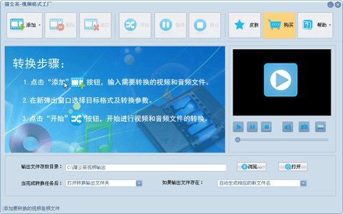 是一款专业的的功能全面的视频或音频格式转换工具,软件可以帮助您在各种流行视频格式之间相互转换,比如可以在AVI, WMV, VCD, SVCD, DVD, VOB, MOV, MP4, 3GP, MTS, FLV, MPEG, SWF等几十种格式视频之间相互转换。软件还可以在MP3, WMA, WAV, AAC, AC3, M4A, OGG,FLAC等音频之间相互转换。软件可以转换各种高清摄像机录制的视频如MTS、M2TS、H.264/AVC AVCHD、MPEG-2为各种常用格式的视频,软件支持转换各种移动设备的音频和视频格式,可以将各种视频转换为在如各个型号的iPhone、iPad、iPod完美播放的视频或音频。可以转换在各个型号的三星,苹果iPhone,华为,魅族,htc,联想,OPPO,vivo,诺基亚,小米,摩托罗拉,索爱手机,黑莓、以及各种国产手机所支持播放的视频和音频格式。软件可以转换各种DVD、VCD、SVCD光盘视频。