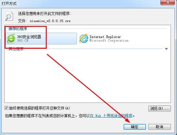 1、解压文件,鼠标右键点击【xiaomise_v2.0.0.15.crx】,选择【打开方式】;