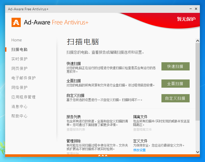 Ad-Aware Free Antivirus+ 结合了防毒软体与以往的Ad-Aware 防间谍软体两大引擎,除了提供即时病毒监控与防护功能之外。