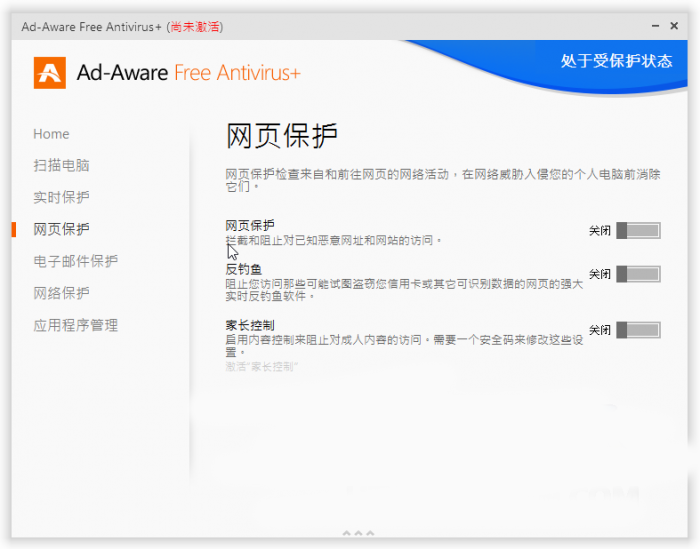 第4步 这是Ad-Aware Free Antivirus+ 软体主画面,其中有些功能是付费版本才可启用。