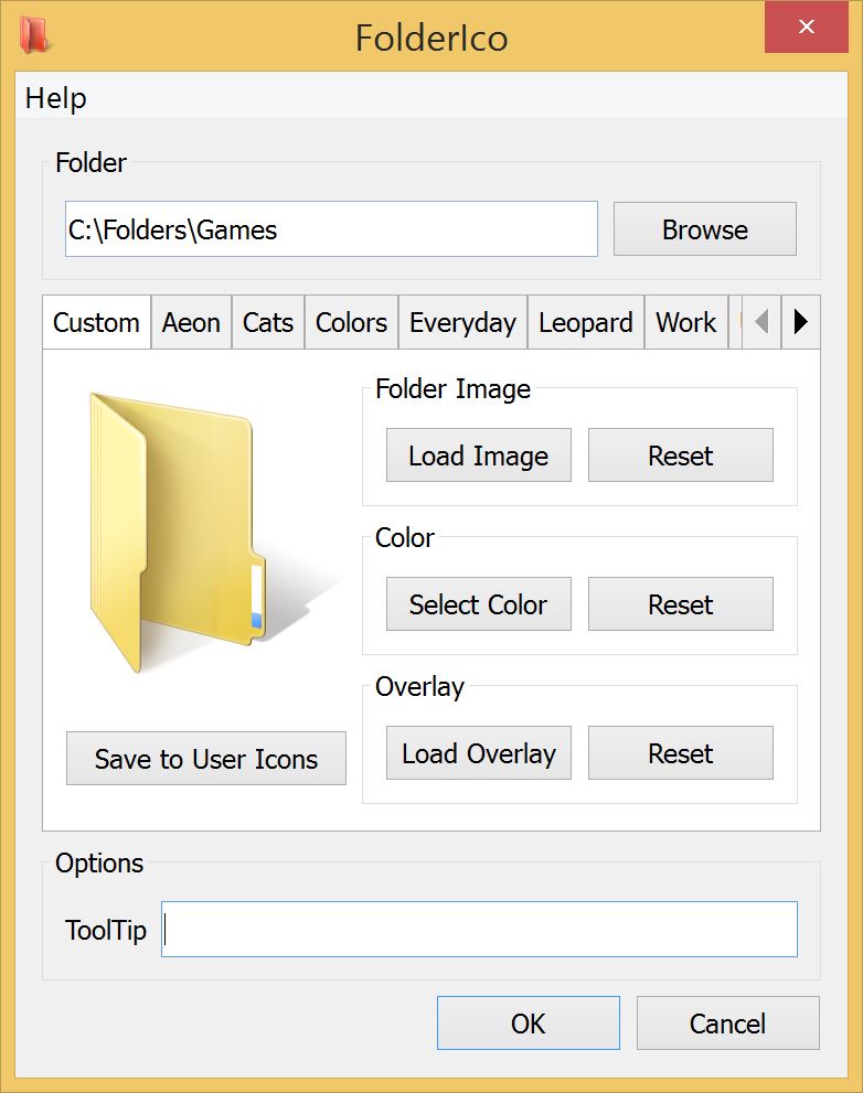 撰写自己的颜色!在FolderIco菜单中选择“更多图标”来查看该文件夹的自定义窗口