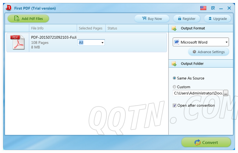 FirstPDF 3.6 官方版 是一款可以把PDF转为Word、文字档或图片的软件。它可以将PDF档转成DOC文档、TXT纯文字文档,或者是PNG、JPG、GIF、BMP、TIF(支持单页或多页格式)图像文件。