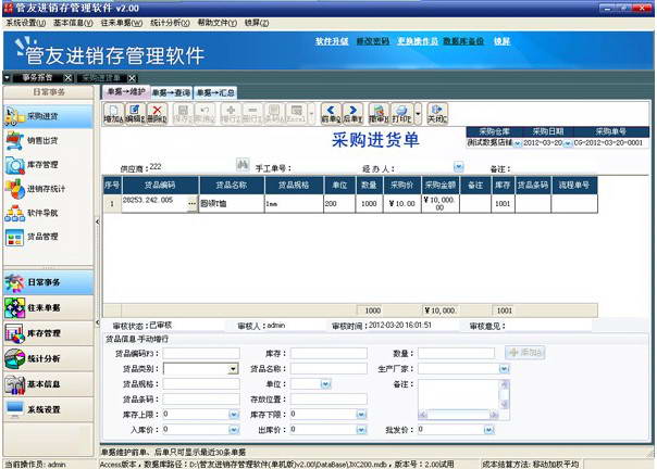 管友进销存管理软件是一个集“进、销、存、财”四位一体的全功能商贸管理软件。软件界面设计简洁,美观。其人性化的软件流程,使普通用户不需培训也能很快掌握软件的使用方法。管友进销存管理软件以业务为基础,整个系统一体化设计,功能流畅,操作方便,界面美观,是您商贸管理的好帮手!