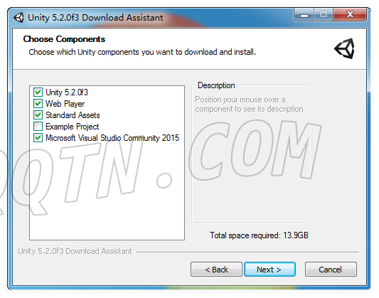 另外,对于Windows用户,安装器内可以下载一个更紧密的 Visual Studio 集成和下载的 Visual Studio Community 2015 以及 Visual Studio Tools for Unity(原名UnityVS的工具)。开动吧!