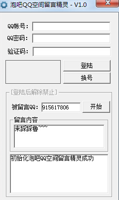 3.点击开始即可。注意:每个小号能刷10条留言就需要更换小号再刷(软件自动退出已刷满的小号)。