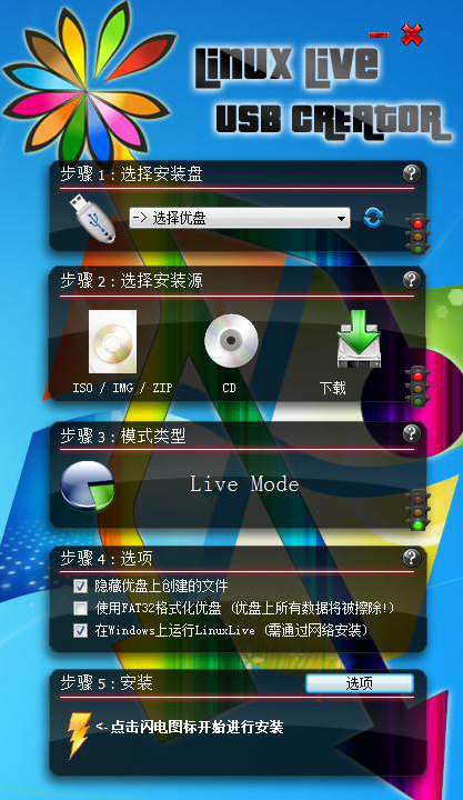红灯:步骤没有被正确执行,则无法开始创建一个Live USB密钥