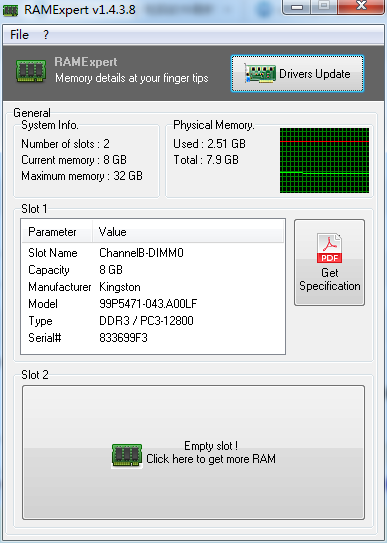 RAMExpert是一款可以检测出内存条具体的型号的工具,这款软件只要安装完成就会显示你内存的型号以及大小,该内存条的具体信息一应俱全。